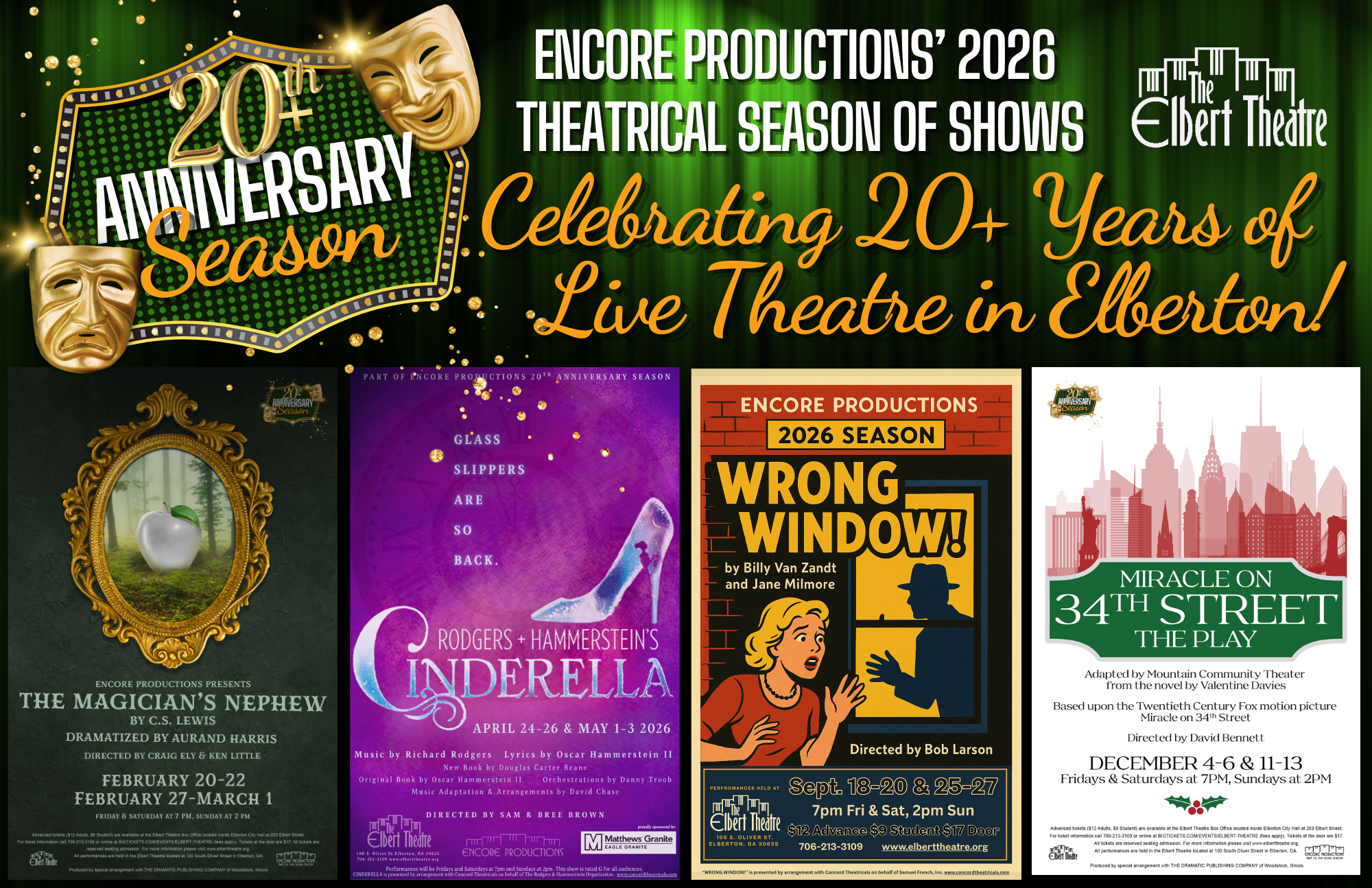 Home | History | Foundation | Encore Productions | Classes | Rentals | Contact | Movies | Buy Tickets Copyright © 2007-2025 - Elbert Theatre